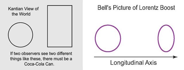 This is a Kantian question. The observer is in a different environment. Einstein formulated this problem with a mathematics called the Lorentz group. His Lorentzian system consists of three rotations around three different directions in the (x, y, z) space, three Lorentz boosts in those directions, and three translations along these different directions, plus one translation along the time. There are thus ten operations in the Lorentzian system. three translations along the three different directions. The mathematics governing these ten operations is called the inhomogeneous Lorentz group {Wigner 1939]. The main purpose of this paper is to examine how the hydrogen appears to moving observers in terms of the way Kant and Hegel suggested. We can then ask whether quantum mechanics and special relativity can be synthesized.
