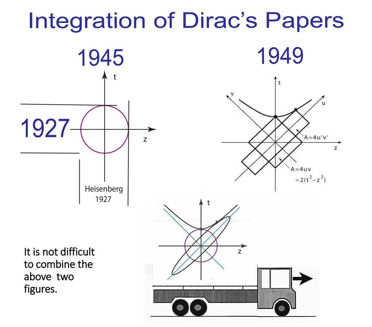 Let us go back to Figure 5. This figure asks whether it is possible to derive Einstein’s Lorentzian world from the principles of quantum mechanics. The answer to this question is YES. While the Dirac’s oscillator algebra is derivable from the Heisenberg brackets, the Heisenberg brackets are also derivable from the oscillator algebra. Thus, both quantum mechanics and special relativity are derivable from the same set of equations. The synthesis of quantum mechanics and special relativity is now complete.