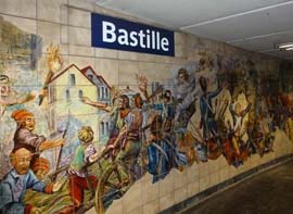 - Bastille Station is above the ground. The wall paintings reflect the historic Bastille day.
