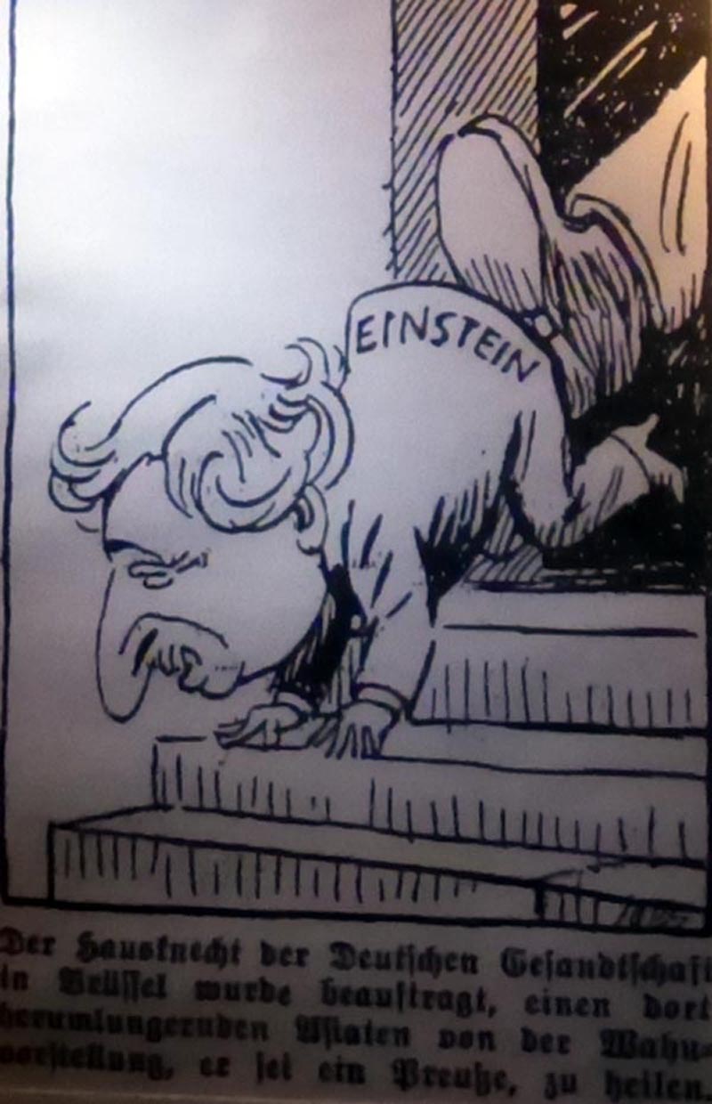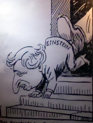 European depiction of Einstein's immigration to the Unites States. Photo from the