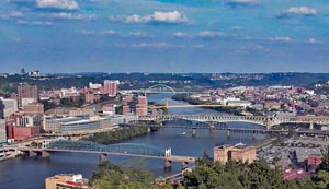 Curved bridge. Why curved? - Many bridges in Pittsburgh (USA).