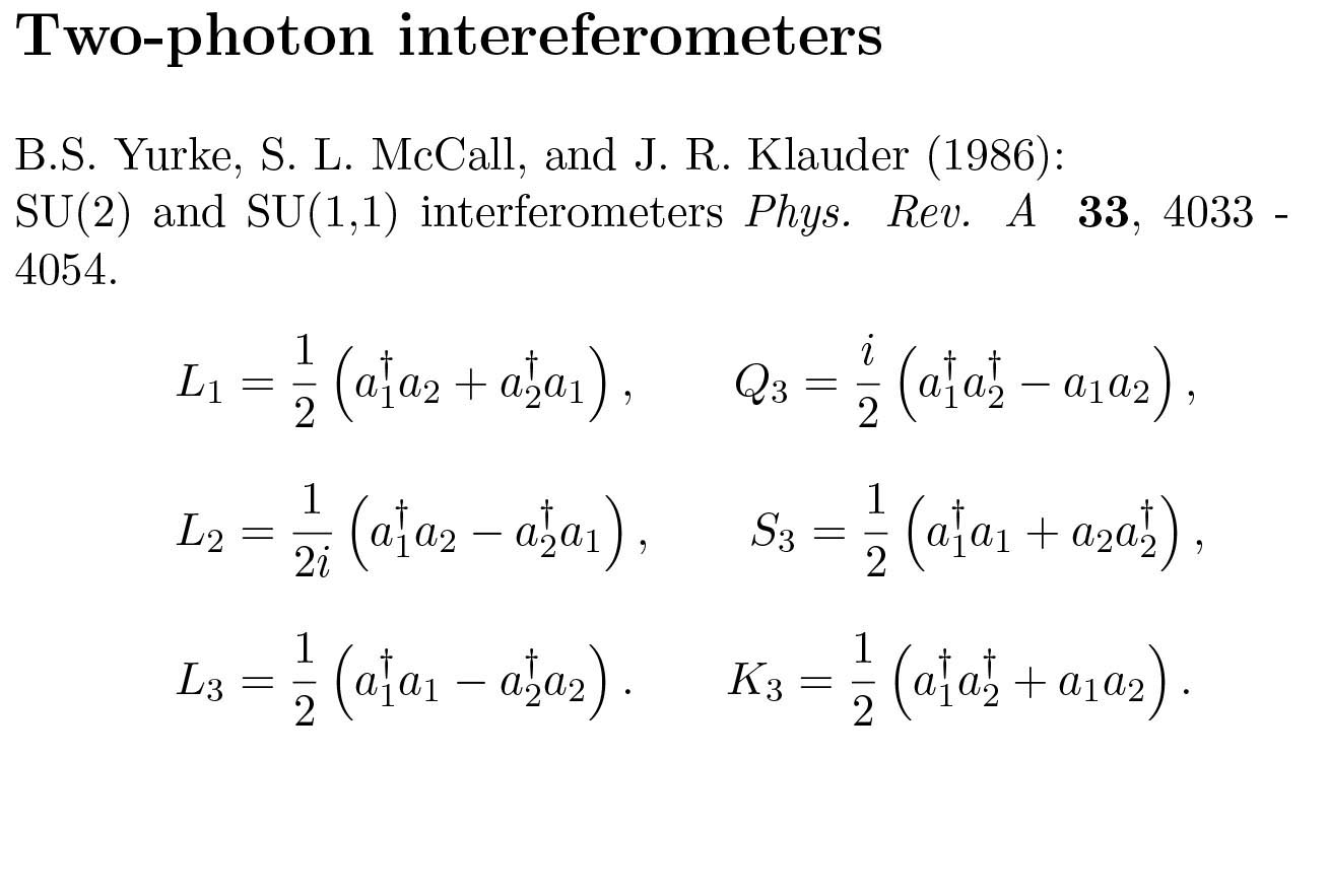 Ten years lalter, in 1986, Yurke, McCall, and Klauder introduced two-photon interferometers. They lead to six more generators.