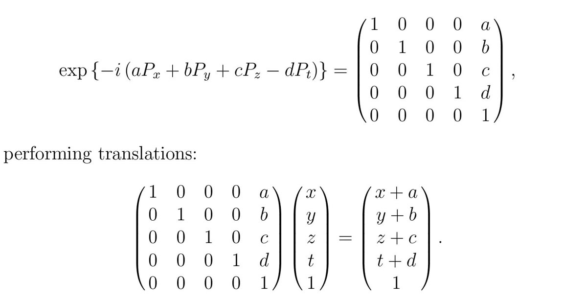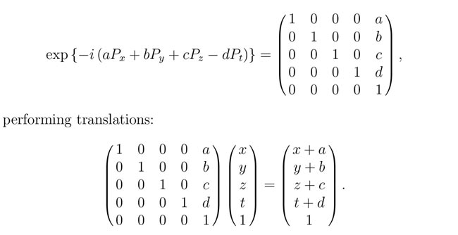 These generators lead to the following translations in the (x,y,z,t) coordinates: