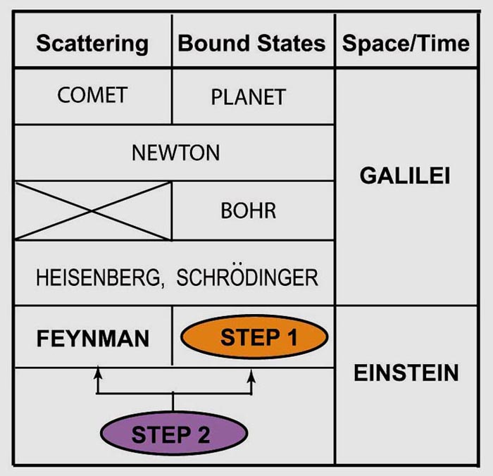 Let us look at the history of physics. The difference between comets and planets has been a constant head ache to human beings. It was not until Newton to see that they are the same thing. In quantum world, Bohr intoduced a model for quantized bound states, but was not able to explain scattering problems. Schroedinger and Heisenberg solved this problem and unified both scattering and bound-state problems. As we all know, it was a great leap forward in physics.