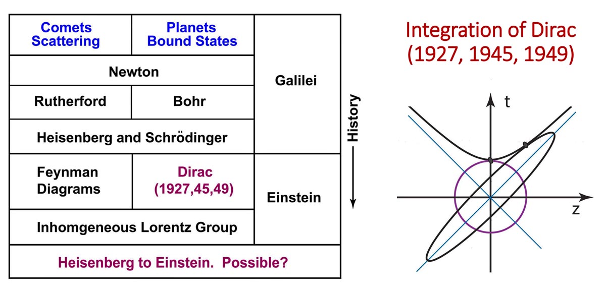 This paper tells that the Lorentz boost is a squeeze transformation, as shown in this figure, resulting in the integration of Dirac's 1927, 1945, and 1949 papers.