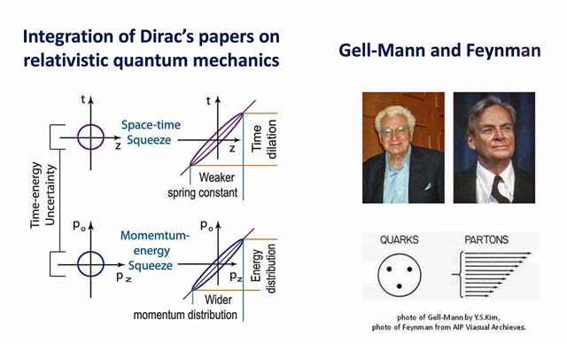 - This figure shows that Gell-Mann's bound state and Feynman's parton picture are two different ways of looking at the same object. My paper publsihed in Review Letters (1989) contains the left half of this figure. Click here for more detailed stories of the Bohr-Einstein and quark-parton issues.