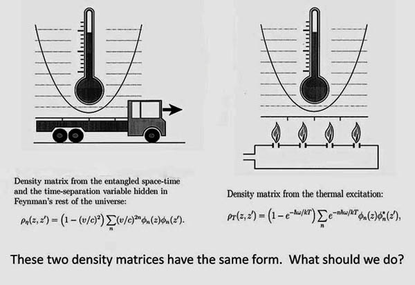 There are two different physical operations in this figure, but their density matrices have the same mathematical form. From this figure, we can calculate the temperature can be calculated from the truck velocity, and here is the result.