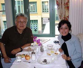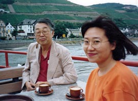 - am Rhein: with a Korean lady on a cruise boat on the Rhine River near Mainz (Germany, 1991). It our first time to meet, but she was kind enough to bring two cups of coffee to our table. I like to meet her again.