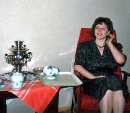 - In 1992, I was attending a conference held at the Hotel Uskoi of the Russian Academy of Sciences. The the hotel floor manager was as natural as my sister. This prompted my research on Russian ladies. In this photo, she prepared tea for me.
