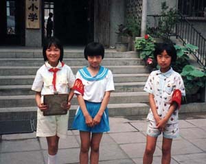 - Chinese Children at their elementary school in Beijing. Two of them are wearing red bands, and they seem to have a special assignment.