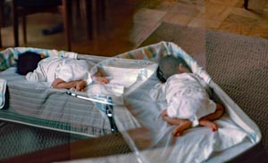 I took many photos even after I moved to College Park near Washington, DC. In 1965, I took two successive photos of my infant son using this camera with this result. This partial superposition was due to the broken film advance mechanism. Even in the 1960s, Japanese products were not completely reliable. Canon was not Leica.