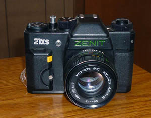 This is a reflex camera like the LeicaFlex I once had, and its mechanism was somewhat strange to me. It has a lens called Helios 6, with 2.0/55. Indeed, it is an excellent lens. The body is heavy and somewhat inconvenient to me, but it is very strong. This camera is still in excellent condition. I took some interesting photos with this camera.
