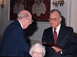 This ceremony took place during the conference I organized in commemorate the 50th anniversary of of his 1939 paper on internal space-time symmetries of elementary particles. I devoted a substantial portion of my research efforts to understanding and further development of this paper. See my Wigner page for further information.