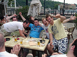 - This lifestyle continues along the streets leading to the Danube bank. These young men are from England for vacation. I asked them whether they speak English, and this was their response.
