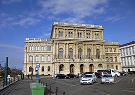 - The Academy building is on the east bank of the Danube near the Chain Bridge.